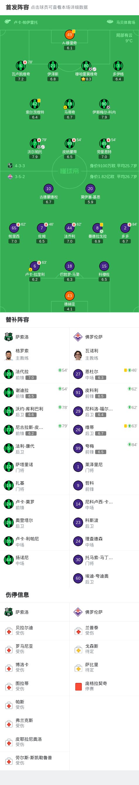 北京時間12月6日22:00,意甲第14輪,薩索洛主場對陣佛羅倫薩。上半場,曼德拉戈拉點射破門,隨后沃爾帕托、穆哈雷莫維奇先后得分幫助薩索洛反超;下半場,主教練格羅索不滿判罰被紅牌罰下,伊斯梅爾-科內(nèi)破門得分。最終薩索洛3-1逆轉(zhuǎn)佛羅倫薩。